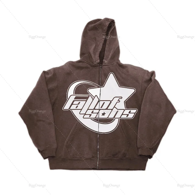 Brown Print Letter Sweatshirt Fashion Zip Hoodie Streetwear Mens Punk Sweatshirts Vintage Jackets Womens Tops